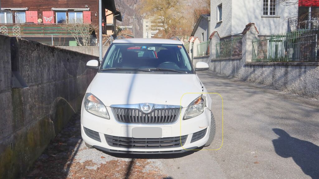 Beschädigung Stossstangenabdeckung vorne links gerissen und verformt, Scheinwerfer vorne links gebrochen, Schlossträger deformiert, Kotflügel vorne links eingedellt und gestaucht, Träger oben links gestaucht, Türe vorne links durch Anstehen des Kotflügels beschädigt. Allfällige Beschädigung der Vorderachse links nicht ausgeschlossen. Anmerkung zum besichtigten Fahrzeug Die Türe vorne links konnte nicht geöffnet werden, da diese durch den nach hinten gestauchten Kotflügel blockiert war. Motor Getriebe Vorderachse Hinterachse Airbags ausgelöst: 0 unbekannt ( Abfallcode 16.01.04ak )