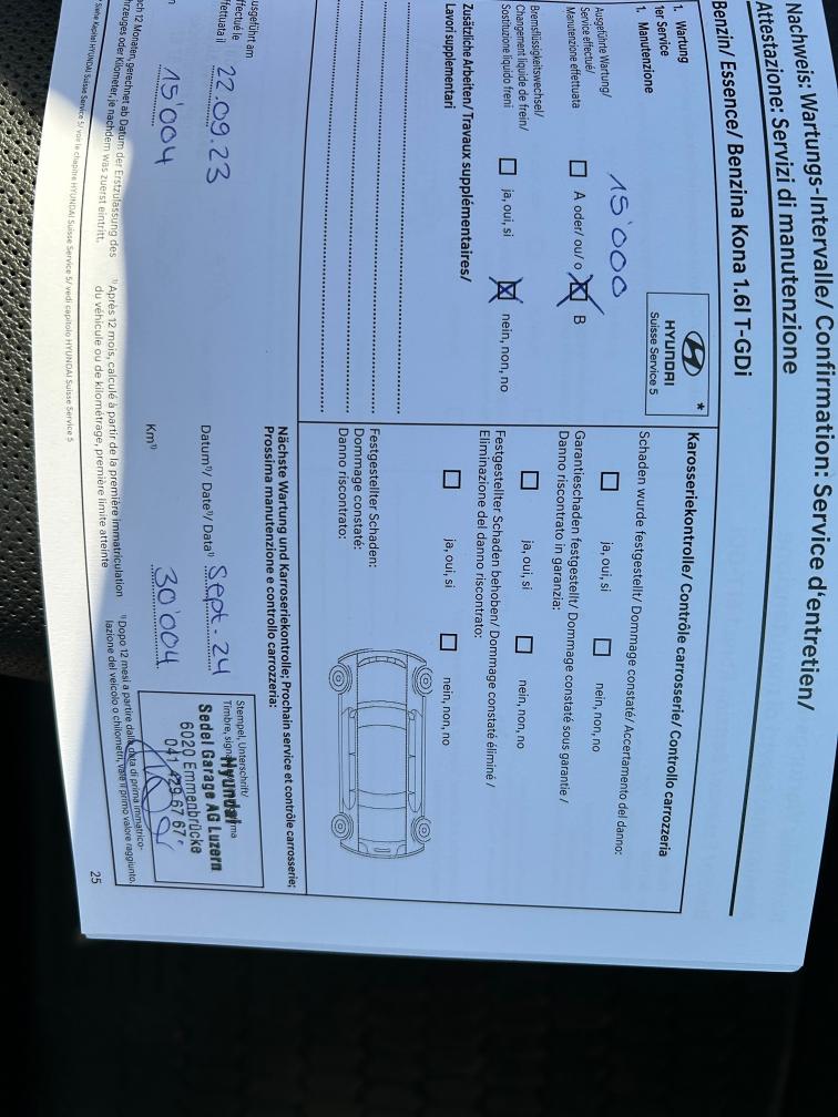 Fahrzeug hat noch Werksgarantie bis am 22.03.2028 Sommerräder 3 - 4 mm Winterräder 6 - 7 mm Letzter Service wurde am 13.06.2025 mit 61'202 km durchgeführt.