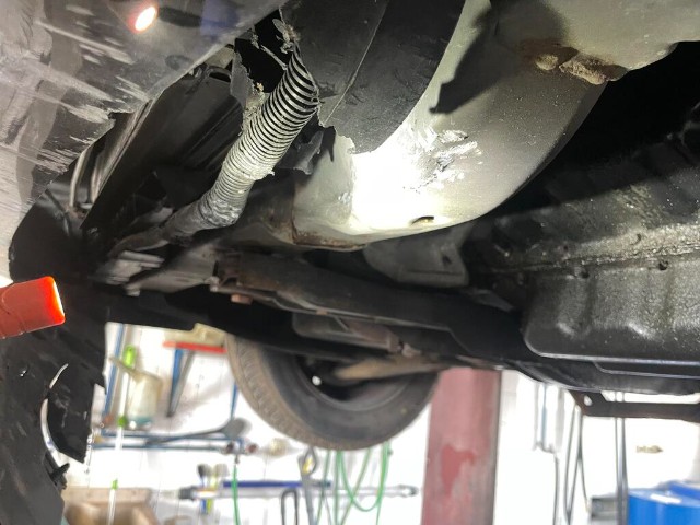 Aufhängungsteile vorne links beschädigt. Risiko Vorderachse.