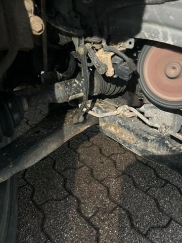 Vorderachse ist beschädigt. Aufhängungsteile vorne rechts beschädigt. Risiko Lenkung.