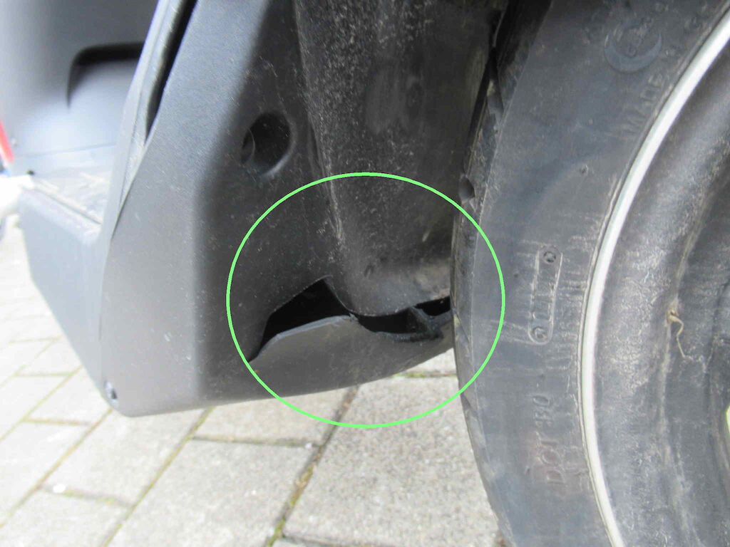 Beschädigung Gabel samt Lenkstange verbogen, Schutzblech, Radkasten innen Motor Getriebe Vorderachse Hinterachse Airbags ausgelöst: 0 unbekannt ( Abfallcode 16.01.04ak )
