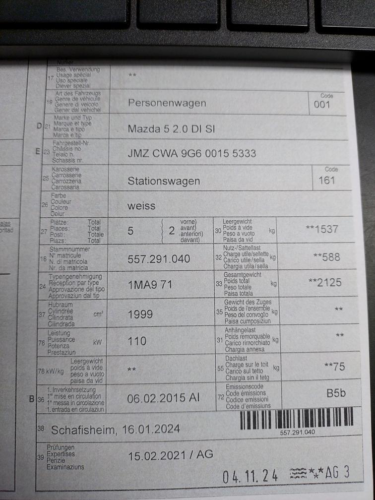 Achtung: Im Fahrzeugausweis sind 5 Plätze vermerkt. Im Typenschein hat das Fahrzeug 5-7 Plätze. Sprich, bei einem MFK Termin lassen sich die 7-Plätze eintragen. Fahrzeug braucht eine gründliche Aufbereitung aussen und innen. Dann ist das eine wunderbare Basis für eine Familien-Auto. Schäden gemäss Bilder. Weitere Schäden sind nicht ausgeschlossen. Letzter Service 12.11.2025 bei 141'000km. MFK 11.2024. Sommer wie Winterreifen auf Alufelgen mit ausreichend Profil. Für sichtbare oder nicht sichtbare Mängel wird nicht gehaftet. Wir testen & kontrollieren nicht alle Funktionen vom Fahrzeug. Das Risiko liegt somit vollumfänglich beim Käufer. Nachdem der Höchstbietende den Zuschlag erhalten hat, gibt es keine Nachverhandlung, auch wenn nicht deklarierte Mängel zum Vorschein kommen sollten. Ab Platz ohne Garantie, Wandelung und Minderung werden wegbedungen. Abholung nach Zuschlag zeitnah.