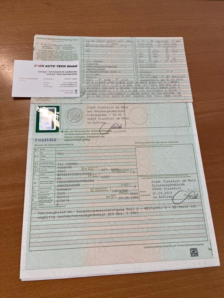 Das Fahrzeug wurde im Juli 2025 aus Deutschland Importiert, 13.20 vorhanden. Da es sich um Umzugsgut handelt, kann der 911er frühestens im Juli 2026 nach bestandener MFK Prüfung auf ein Schweizer Schild eingelöst werden. Batterie ist def. muss ersetzt werden. Sonst läuft und fährt er problemlos, wir haben aber keine weiteren technischen Prüfungen beim Fahrzeug gemacht. Fz. wird ab Platz ohne Garantie oder jegliche Nachwährschaft verkauft.
