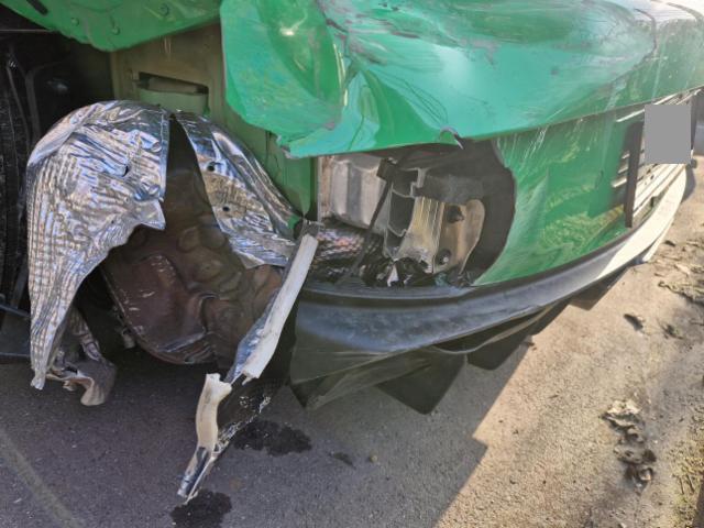 Linke Seite beschädigt. Tür vorne links ist eingedrückt.