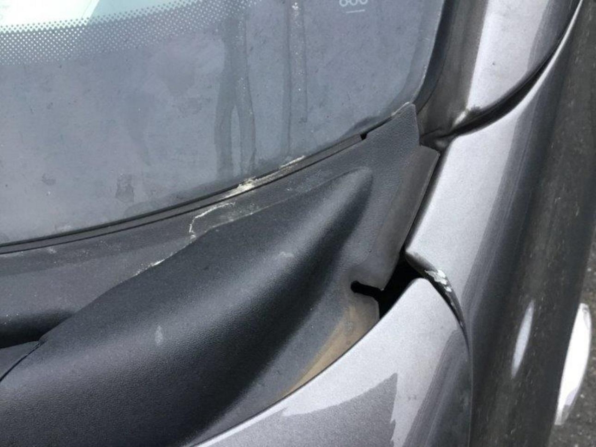 Auspufftopf, Diverse Anbauteile, Diverse Gebrauchspuren, Front, Front rechts, Frontblech, Frontscheibe, Kotflügel rechts, Kühler, Motorhaube, Querträger, Radhaus vorne rechts, Scheinwerfer links, Scheinwerfer rechts, Schlossträger, Stosstange vorne