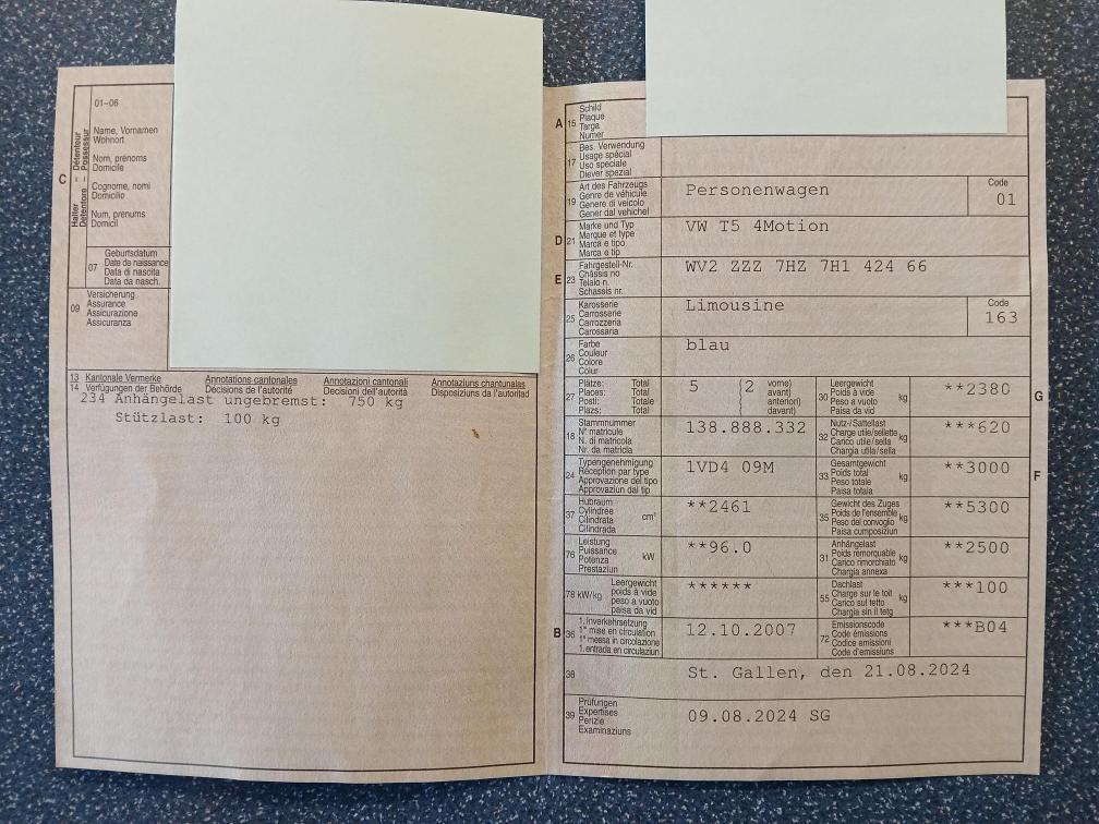 - Allradfahrzeug, im Kundenauftrag - Klima, elektrisch zuziehende Schiebetüren - Fahrzeugangebot OHNE Dachträger- und Dachbox sowie - Motor läuft in warmem Zustand schlecht an (dreht einige Sekunden bis er anspringt), eventuell sind die Einspritzdüsen undicht - Motor/Getriebe hat Ölverlust - Allgemeinzustand "gebraucht", diverse Kratzer, siehe Fotos - bei eingeschaltetem Licht leuchtet dauerhaft das Fernlicht - Scheiben im Laderaum sind alle aus Plexiglas (ehemaliges Polizeifahrzeug), ausser die bei der Schiebetüre links ist aus Glas - Sitz für 5.Sitzplatz ist vorhanden Es wurde keine technische oder mechanische Prüfung durchgeführt. Fahrzeugkauf auf eigenes Risiko, ab Platz ohne Garantie und Nachwährschaft. Die Gewährleistung für Sachmängel wird wegbedungen. Wandelung und Minderung sind ausgeschlossen!