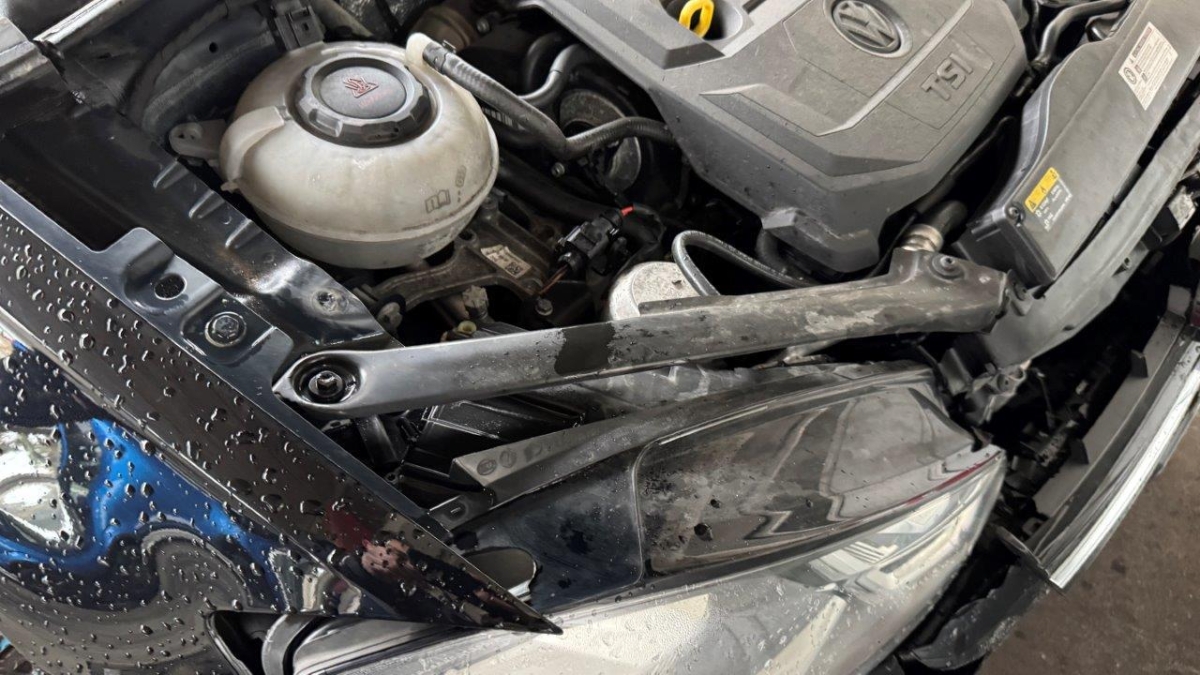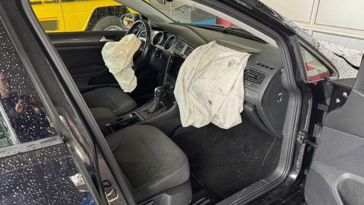 Airbag ausgelöst, Armaturenbrett, Front, Front links, Front rechts, Frontblech, Frontscheibe, Gurtstraffer ausgelöst, Klimakühler, Kofferraumboden, Kotflügel links, Kotflügel rechts, Kühler, Kühlgitter, Ladeluftkühler, Längsträger vorne rechts, Motorhaube, Querträger, Radhaus vorne links, Radhaus vorne rechts, Scheinwerfer links, Scheinwerfer rechts, Schlossträger, Stosstange vorne