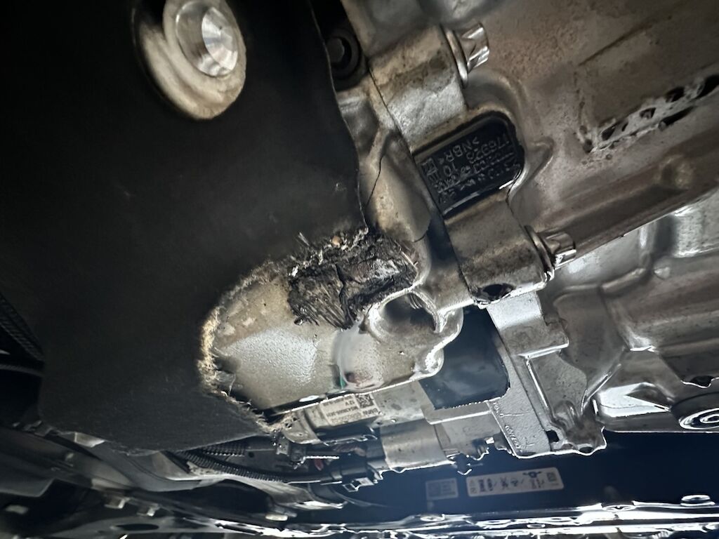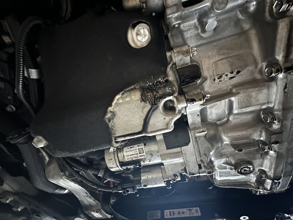 Anprall am Fahrzeugunterboden : Dabei wurden die Stossstange, die Ölwanne sowie das Getriebe beschädigt. Risiko Getriebe :Getriebegehäuse ist gerissen. Risiko Motor: Motor ist weitergelaufen, bei der Besichtigung kein Oil im Motor gemäss Ölmessstab. Motor Getriebe Vorderachse Hinterachse Airbags ausgelöst: 0 unbekannt ( Abfallcode 16.01.04ak )
