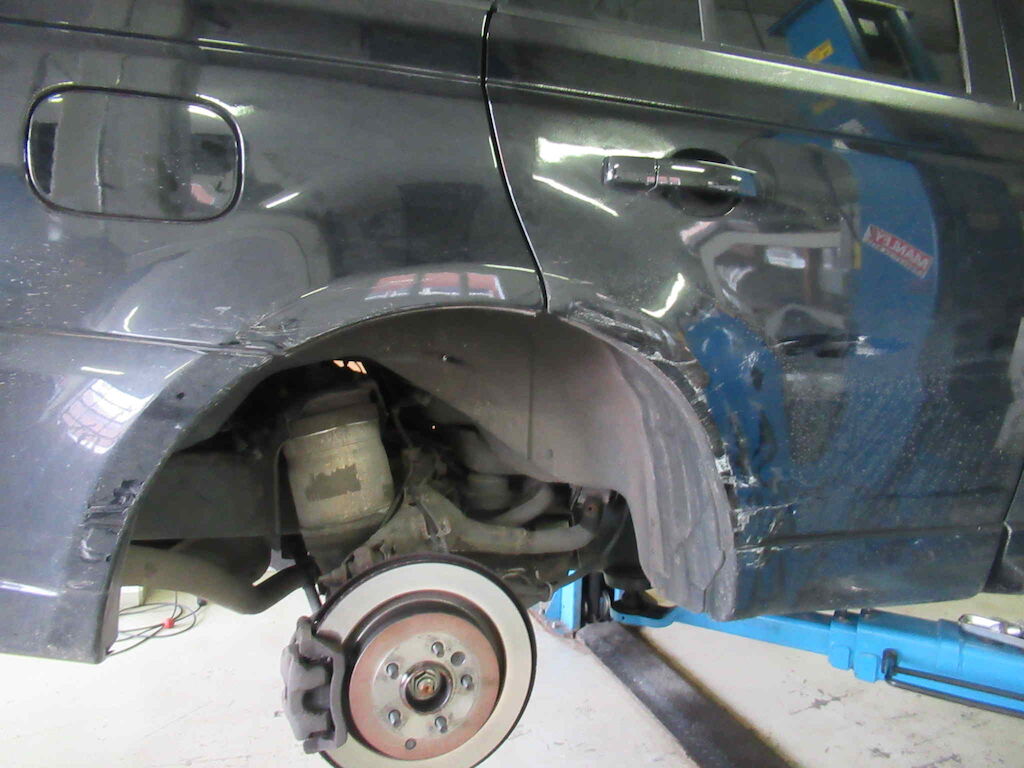 Beschädigung Stossfänger, Seitenwand, Türe hinten rechts, Felge, Reifen, Luftfederung hinten rechts, Aufhängung, Radlager, Radkasten Motor Getriebe Vorderachse Hinterachse Airbags ausgelöst: 0 unbekannt ( Abfallcode 16.01.04ak )