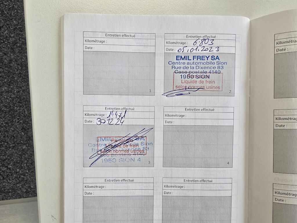 2 clésMap + carnet disponibleService entretien à faireExpertise ok 06.03.2026Equipé en roues d'hiver pneus 6 mm+ 4 pneus d'été 5 mmFreins avant 70 %Freins arrière 70 %Rayures et bosses sur la carrosseriePas de contrôle technique (essai en roues ) effectué