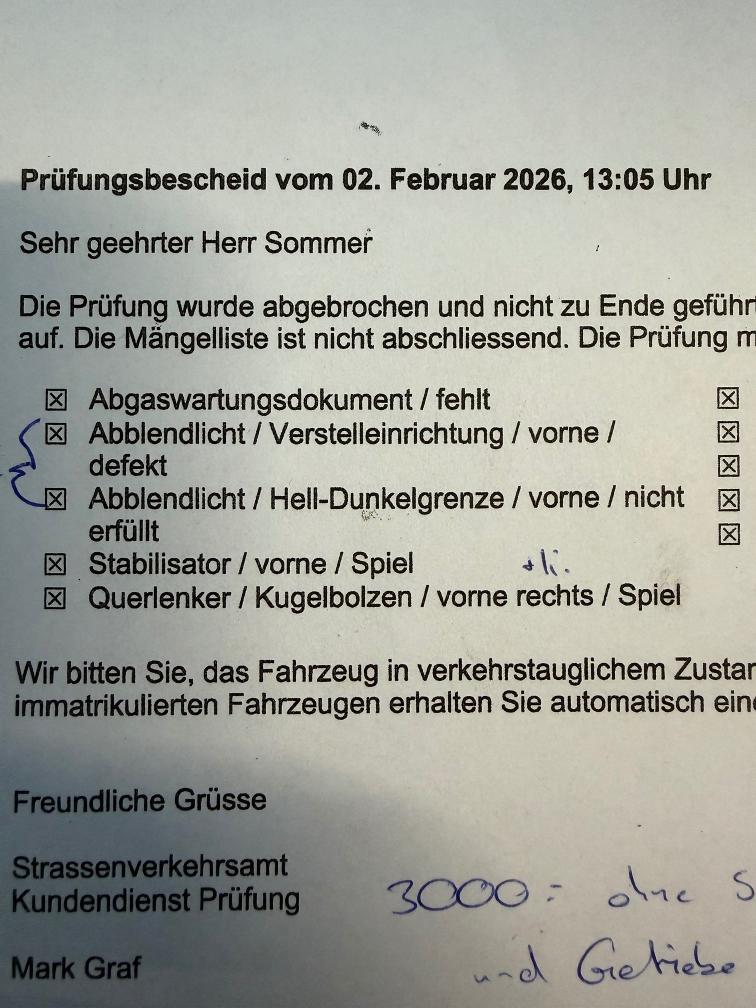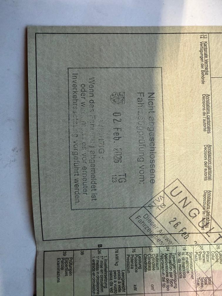 Fz hat MFK nicht bestanden. Mängelliste bei Fotos Diverse Sachen wurden aber kürzlich erst gemacht: Batterie 8.2025 Allwetterpneu: 12.2025 Handbremsbeläge Spurstangen und Endstücke li+re