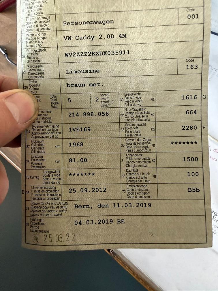 Zu verkaufen: VW Caddy, Baujahr 2012, 4x4, Schaltgetriebe. Bekannte Mängel: Kupplung defekt, Fahrzeug nicht fahrbereit und muss aufgeladen bzw. abgeschleppt werden. Verkauf ab Platz, ohne Garantie und ohne Rückgaberecht. Kein Werkstattcheck durchgeführt, kein Partikelfiltertest. Besichtigung nach Absprache möglich.