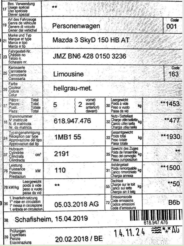 Drosselklappe defekt => Originales Neuteil wird gegen 200.- Aufpreis mitgegeben Kein Partikelfiltertest durchgeführt da Motorschaden, Auspuffrohre sind aber sauber Motor defekt => Zeitweise geklemmt Ansonsten Technisch tadelloser Zustand, diverse Gebrauchsspuren aussen (gemäss Fotos) Gute Ausstattung. Nach Zuschlag Abholung innert 5 Werktagen gewünscht.