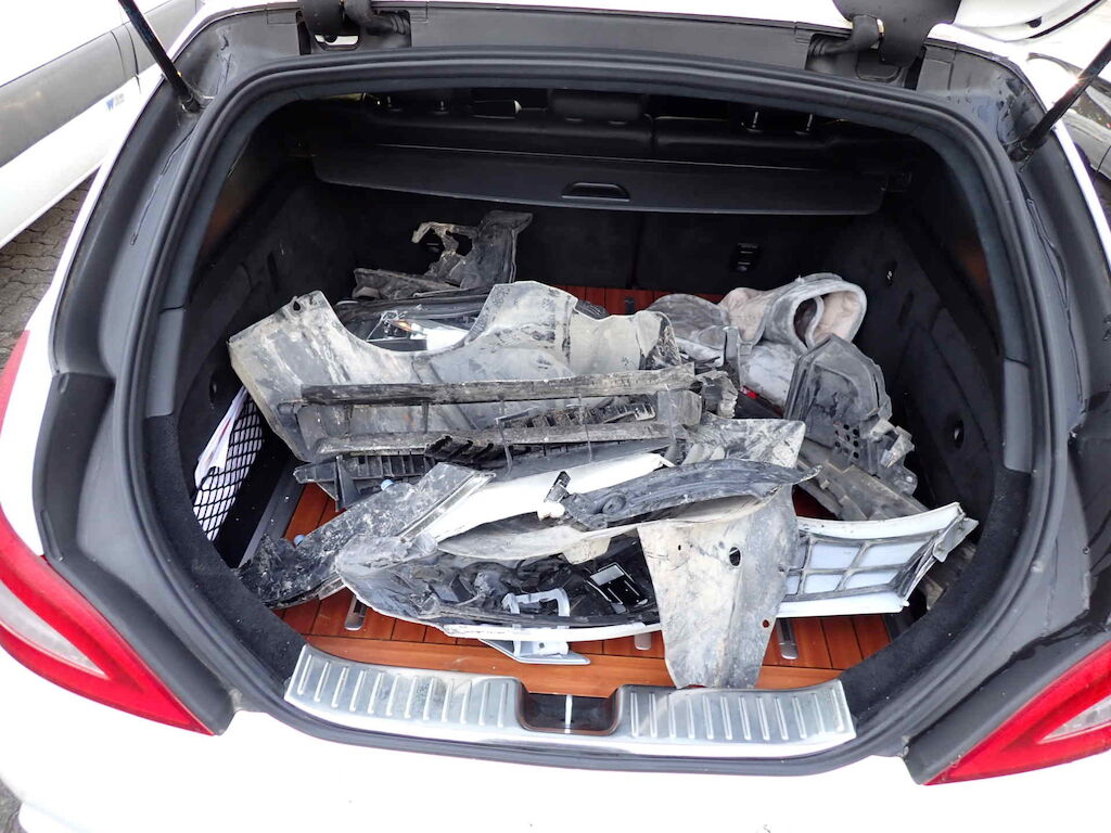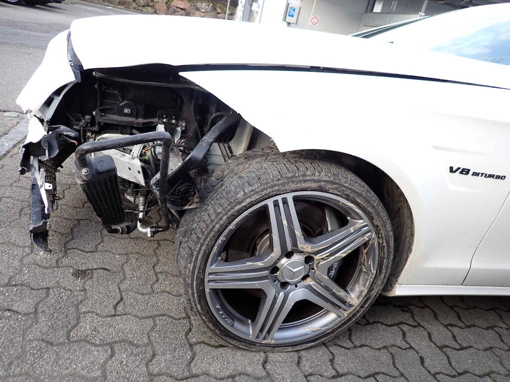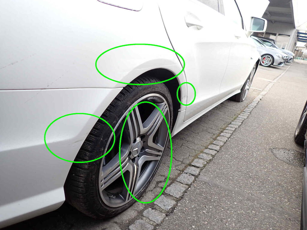 Kollision vorne links, rechts und ganze rechte Seite.Der Motor wurde nicht gestartet - möglicher Oelaustritt!Diverse kleinere Gebrauchsspuren rund um das FahrzeugDas Fahrzeug wurde nass und schmutzig besichtigt!Vorschaden:Steinschlag Frontscheibe