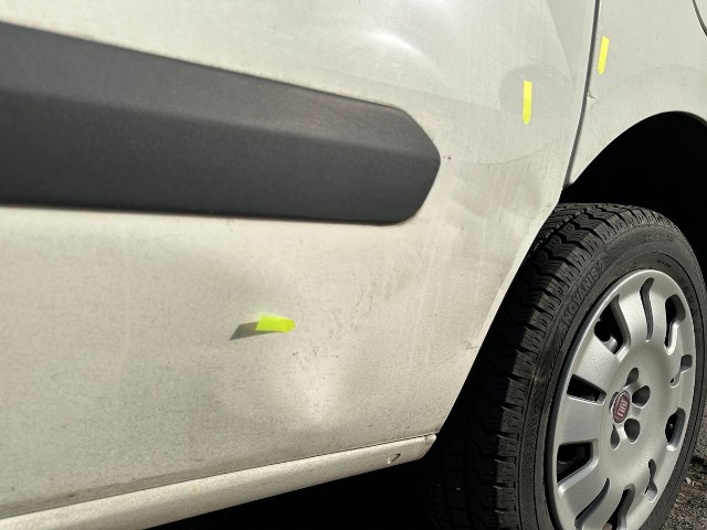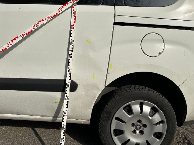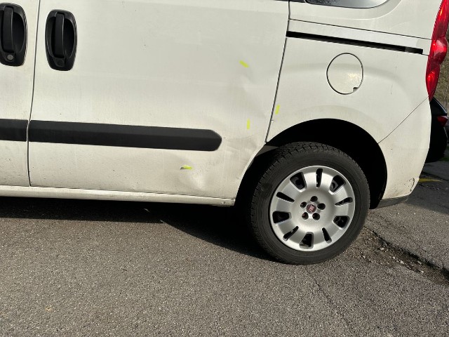Beschädigung der linken Seite Türe vorne, Türe hinten, Seitenwand.