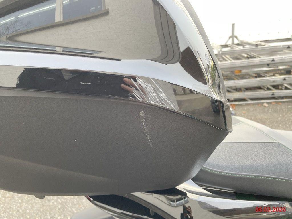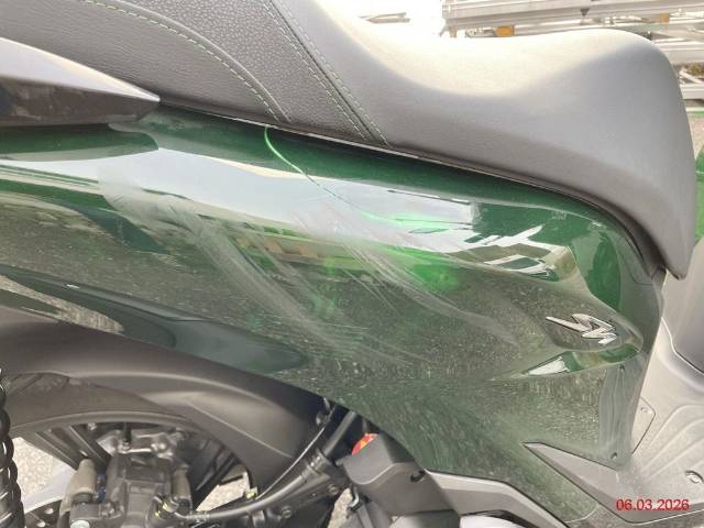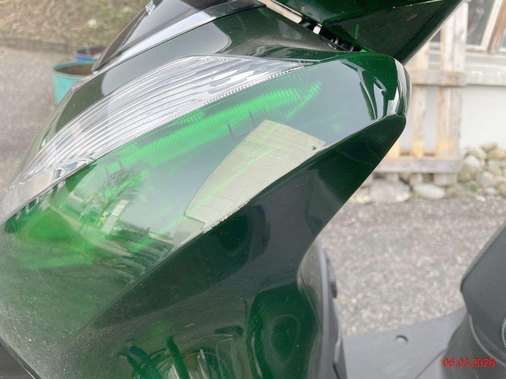 Beschreibung der Schäden: rechte Seite diverse Kratzer, Top-Case zerkratzt, Aufnahme Top-Case verbogen, Rad hinten steht schräg zum Schutzblech (Roller fährt sich komisch, Risiko Rahmen), linke Seite diverse Kratzer Motor läuft