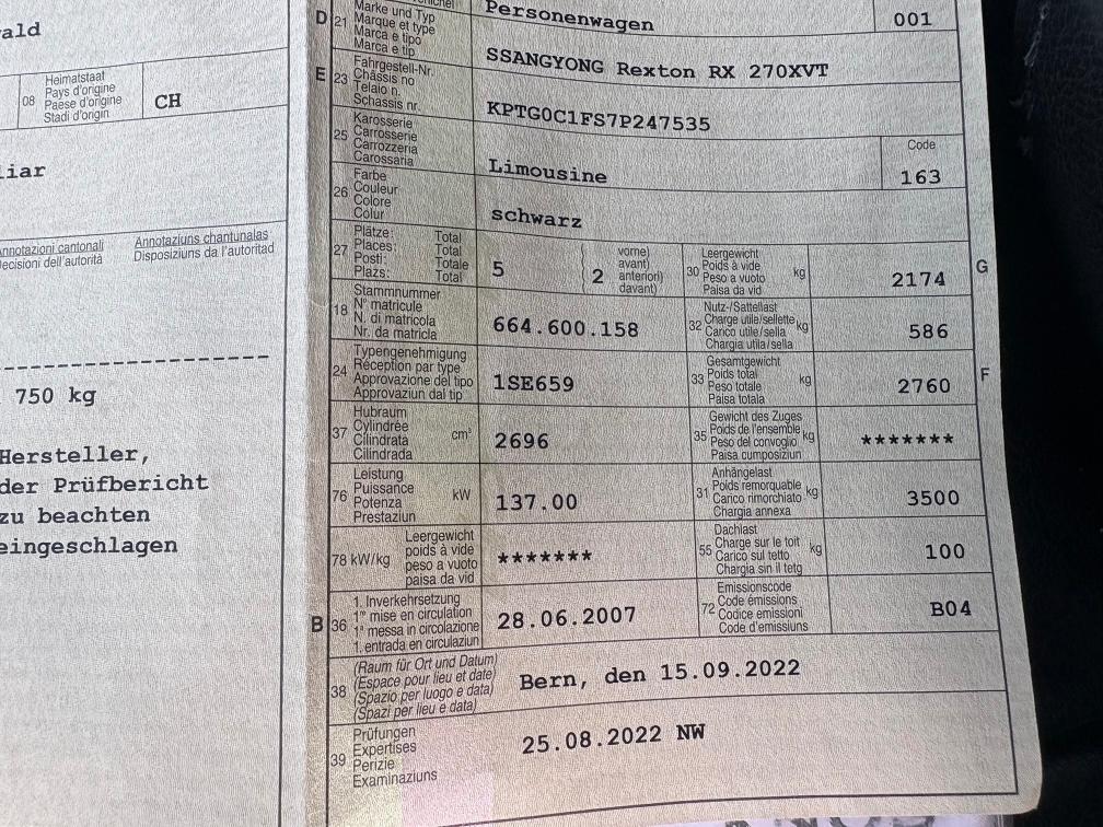Motor und Getriebe läuft gut Zustand ungepflegt und diverse Schäden, siehe Fotos (Einsatz in Landwirtschaft) Motor startet schlecht, Fehler Glühkerzen Zyl. 4+5 Batterie schwach, Wechsel empfohlen Sitzlehne vl gebrochen, nach hinten keine Arretierung (deshalb leuchtet auch die Airbaglampe, Seitenairbag Fahrersitz) Bremsschild hl durchrostet Querlenker vl oben hat Spiel Feder vl gebrochen Griff Heckklappe aussen klemmt Reflektor hl defekt Oelverluste bei Motor und Ladeluftsystem (Reinigen für MFK)