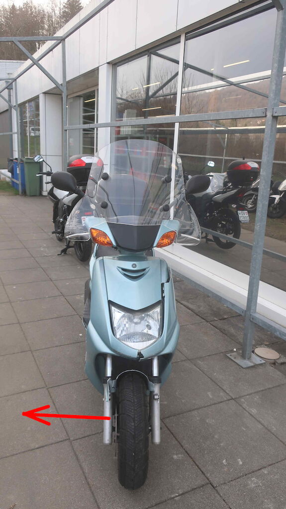 Partie frontale et fourche endommagées. Motor Getriebe Vorderachse Hinterachse Airbags ausgelöst: 0 unbekannt ( Abfallcode 16.01.04ak )
