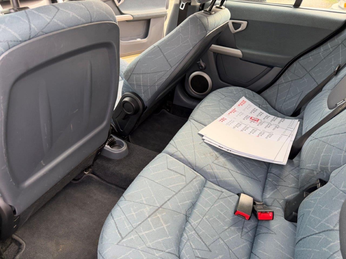 5-Gang-Getriebe, Rücksitzlehne geteilt abklappbar, Reifenreparatur-Set mit Kompressor, Rücksitze längsverstellbar, Einstiegsschienen, Handschuhfach, Wegfahrsperre elektronisch, Servolenkung, Nebelscheinwerfer, Zentralverriegelung mit Fernbedienung, Elektrische Fensterheber vorne, Licht: Nebelschlussleuchte, Lenkrad höhenverstellbar, Steckdose, 4 Leichtmetallfelgen 15J mit Pneu, Antiblockiersystem (ABS), Kühlergrill in Silber, Panorama-Glasdach, Scheibenwischer vorne mit Intervall, Getönte Scheiben, Elektronisches Stabilitäts-Programm (ESP), Seitenairbags, Airbag: Airbag Fahrer und Beifahrer, Fahrersitz höhenverstellbar, Kopfstützen hinten, Cupholder vorne, Drittes Bremslicht, Klimatisierungsautomatik, 3-Punkt-Sicherheitsgurte auf allen Plätzen, Gurtstraffer vorne, Katalysator geregelt, Bremsassistent (BAS), Lenkrad und Schalthebelgriff in Leder, Aussentemperaturanzeige, Sicherheitszelle in Silber