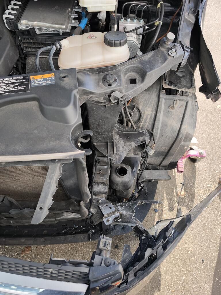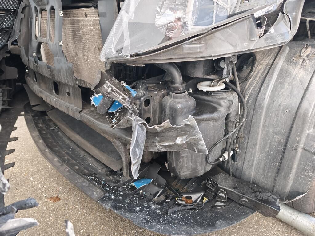 Die Front links wurde durch das Kollisionsereignis erheblich beschädigt und gestaucht. Die Front ist nach rechts verschoben (Längsträger deformiert). Das Fahwerk vorne (links) ist komplett beschädigt! Fahrzeug ist nicht fahrbar. Weitere Details zum Schadenumfang gehen der beiliegenden Reparatur-Kalkulation und den Fotos hervor. Motor Getriebe Vorderachse Hinterachse Airbags ausgelöst: 0 unbekannt ( Abfallcode 16.01.04ak )