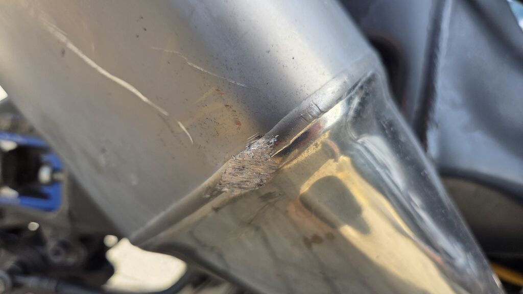 Frontvershclung gebrochen, Kopfschale gebrochen, Frontschutzblech zerkratzt, div Hebel beschädigt, Rahmen li zerkratzt, Auspuff zerkratzt Motor Getriebe Vorderachse Hinterachse Airbags ausgelöst: 0 unbekannt ( Abfallcode 16.01.04ak )
