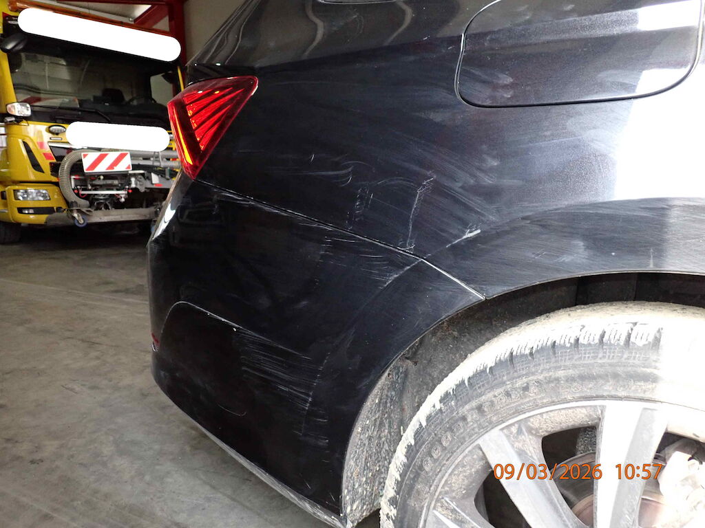 FAHRZEUGDIEBSTAHLSTOSSFÄNGER VORNE GEBROCHENSCHEINWERFER L + R GEBROCHENMOTORHAUBE / KOTFLÜGEL VR / AUSSENSPIEGEL RDACH DELLE / TÜR VL + HL BESCHÄDIGTSTOSSFÄNGER + SEITENWAND HR ZERKRATZTRADAUFHÄNGUNG VRFAHRZEUG STARK VERSCHMUTZT INNEN + AUSSEN