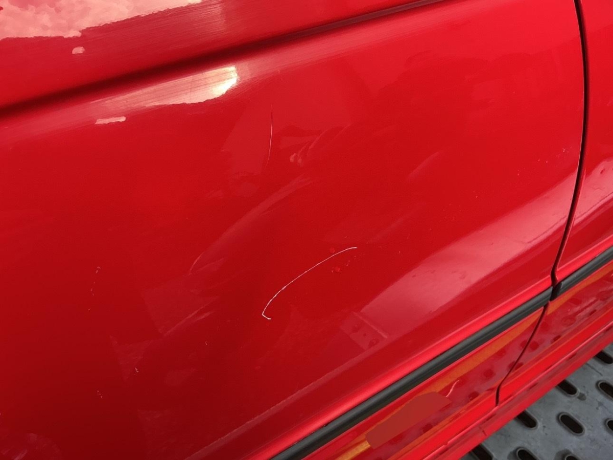 Das Fahrzeug hat rundum kleine Dellen, Beulen und Lackschäden, Diverse Gebrauchsspuren, Seitenwand rechts