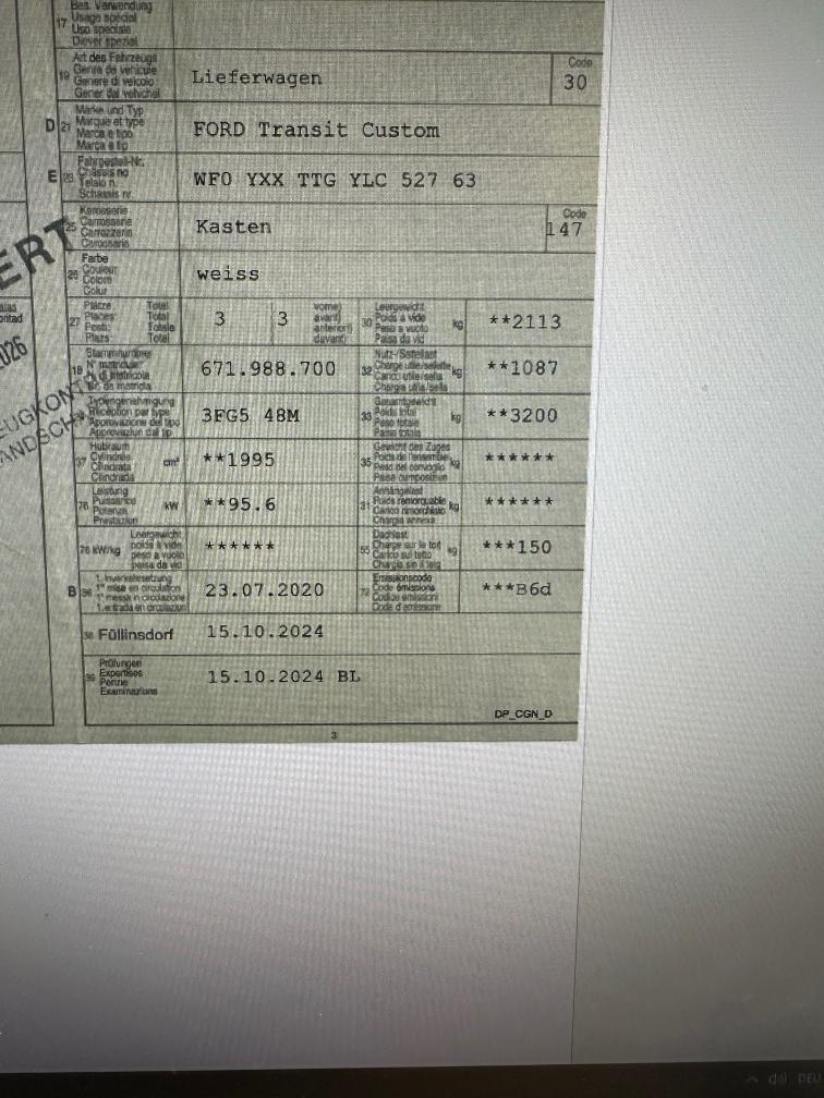 Hiermit bieten wir diesen Ford Transit Coustom an. Fahrzeug hat einen Motorschaden, da Riementrieb defekt oder übersprungen. Motor dreht und hört sich nach Kompression an, jedoch startet er nicht. Fahrzeug wurde ansonsten nicht geprüft. Keine Garantie ab Platz Muss abgeholt werden ist nicht fahrbar!!! Einige Kratzer und Dellen an der Carrosserie Fahrzeug hat Oberflächenrost an der Heckeinstieg siehe Bilder. Fahrersitz hat ein Loch. Fahrzeug ist schmutzig