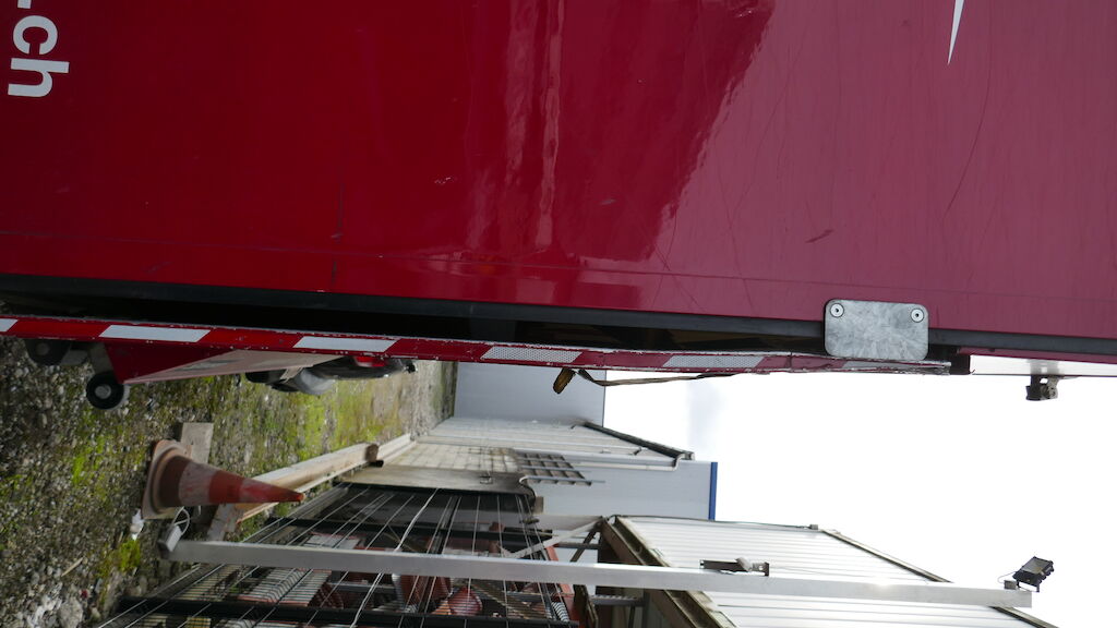 Dommages préexistants :Ridelle élévatrice déformée coté gauche, éraflures divers sur la caisse de transport.Une seule clé. Aucune garantie.