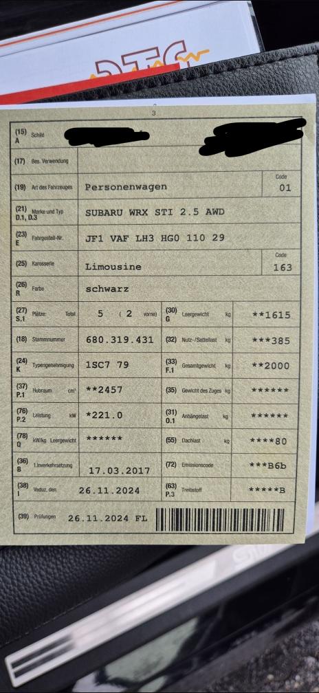 Motor ist original, sonst alle Änderungen bis auf Sitze eingetragen.