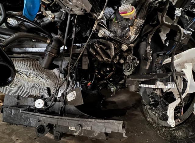 Motorhalterungen sind gerissen. Risiko Motor. Risiko Getriebe. Risiko Differenzial. Motoranbauteile beschädigt. Kühler ist eingedrückt. Klimakondensator ist eingedrückt. Getriebeoelkühler ist eingedrückt. Ladeluftkühler eingedrückt. Alle Kühler vorne sind eingedrückt. Motorstörung: Warnleuchte aktiv Öl-/Kraftstoffaustritt vorhanden