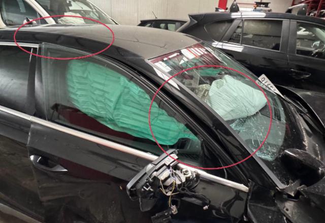 Fahrerairbag ausgelöst. Beifahrerairbag ausgelöst. Beide Airbags sind ausgelöst. Seitenairbag rechts ausgelöst. Kopfairbag links ausgelöst. Kopfairbag rechts ausgelöst. Armaturenbrett ist beschädigt. Gurtstraffer ausgelöst. Gurtstraffer vorne ausgelöst. Gurtstraffer hinten ausgelöst. Dachhimmel gerissen. Innenraum ungepflegt. Starke Verschmutzung im Innenraum. Unangenehme Geruchsentwicklung im Innenraum (z.B. Treibstoff, Lebensmittel, Rauch, etc.) Feuchtigkeitsschaden Innenraum