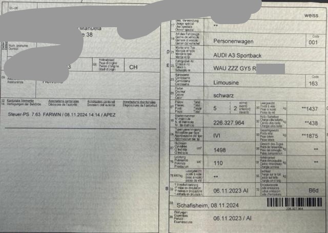 Fahrzeugdokumente vorhanden.