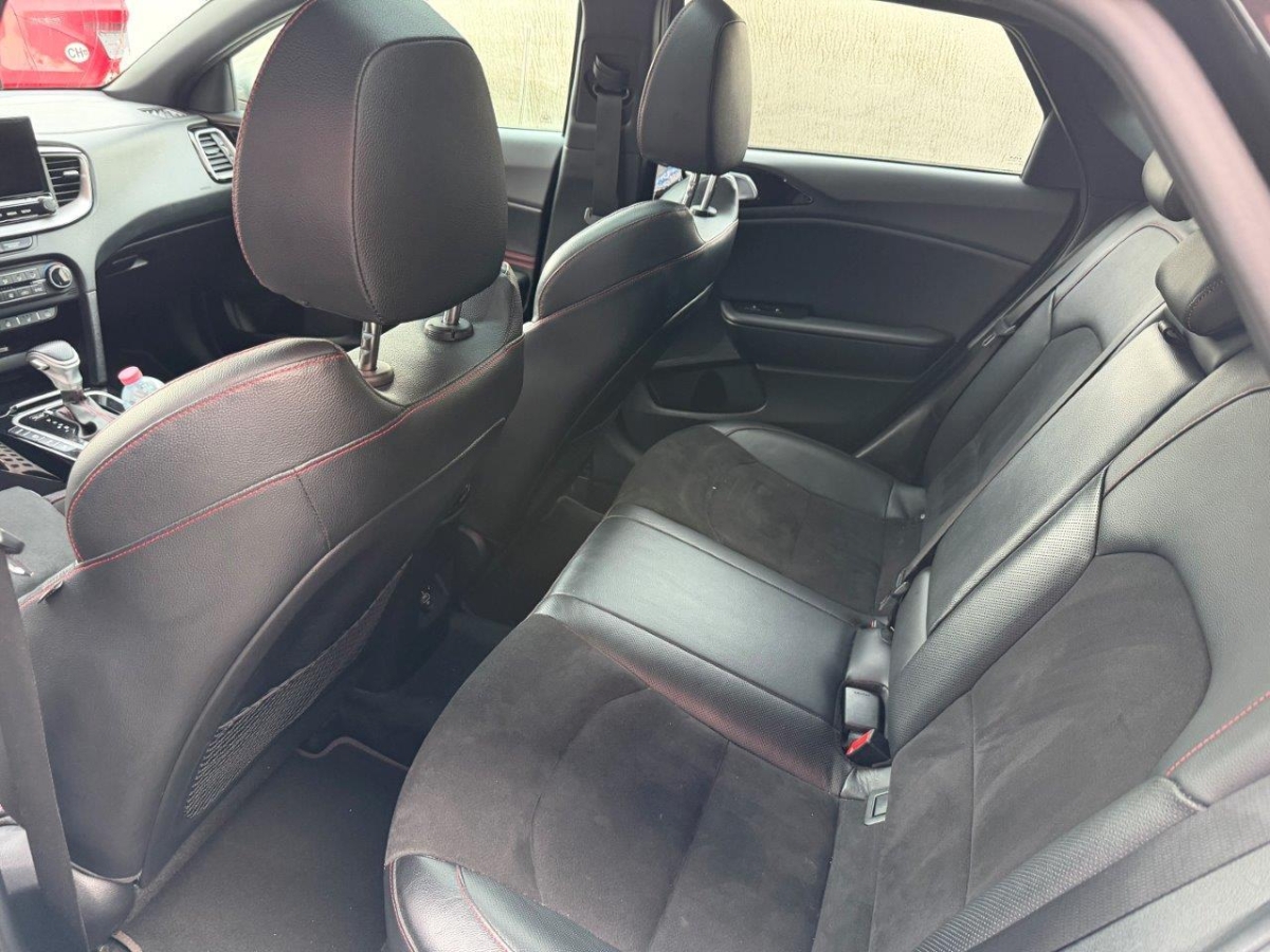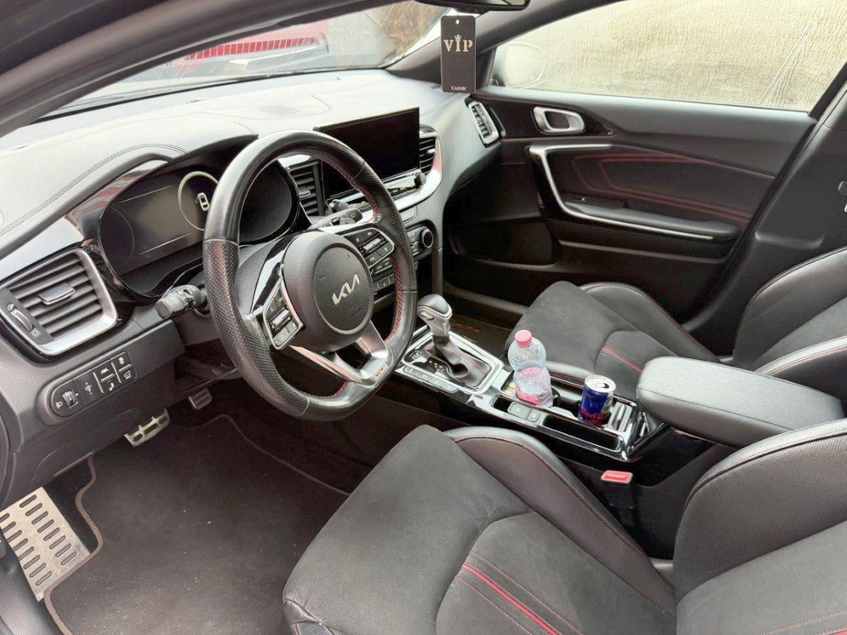 Elektrische Handbremse, Assist: Berganfahrassistent (HAC), Räder: Tire mobility kit, Media: Online-Dienste Kia Connect inkl. 7 Jahre, Lenkrad: Lenkrad höhen- und tiefenverstellbar, Sitze: ISOFIX-Kindersitzverankerung hinten, Innenrückspiegel automatisch abblendbar, Elektronisches Stabilitätsprogramm (ESC) / elektronische Traktionskontrolle (TCS), Assist: Parksensoren vorn, Assist: Rückfahrkamera, Lenkrad: Lenkradheizung, Media: USB-Ladebuchse vorn, Garantie: KIA Garantie 7 Jahre Mobilitätsgarantie (ab 1. Inv.), Licht: Tagfahrlicht vorn und hinten, Katalysator geregelt, Sitze: Höhenverstellbare Kopfstützen vorn und hinten, Heckscheibenheizung, Sitze: Fahrersitz elektrisch verstellbar mit Lendenwirbelstütze, Media: 8 Lautsprecher, Assist: Müdigkeitserkennung, Mittelarmlehne vorne mit Staufach, Servolenkung mit elektrischer Lenkunterstützung, 3-Punkt-Sicherheitsgurte an allen Sitzplätzen, vorn höhenverstellbar, Licht: Nebelschlussleuchte, Regensensor, Media: JBL Soundsystem, Antiblockiersystem (ABS) mit elektronischer Bremskraftverteilung (EBD), Assist: Autonomer Bremsassistent (BAS), Fahrzeug- und Fussgängererkennung, Elektrische Heckklappe, Lackierung: Uni-Lackierung, Start-/Stopp-Automatik, Lenkrad: Schaltwippen hinter dem Lenkrad, Assist: Ausstiegswarnung (SEW), Media: Android Auto und Apple CarPlay, Media: 10.25"-Navigationssystem, DAB+, Räder: 4 Leichtmetallfelgen 7,0 J x 17" -225/45 R17, Aluminium Sportpedale, Sonnenblende Fahrer und Beifahrerseite mit beleuchtetem Spiegel, Media: Bluetooth, Licht: LED-Scheinwerfer, Licht: Nebelscheinwerfer vorn, Licht: LED-Tagfahrlicht hinten, Aussenspiegel elektrisch verstellbar, Licht: Drittes Bremslicht, Getriebe: 7-Gang DSG, Türgriffe aussen in Wagenfarbe, Media: Induktive Ladestation für Smartphone, Assist: Geschwindigkeitsbegrenzer, Aussenspiegel elektrisch beheiz- und einklappbar, Assist: Automatische Parkhilfe, Assist: Fernlichtassistent, Assist: Totwinkel-Assistent, Klima: 2-Zonen-Klima-Automatik, Airbag: Airbag Fahrer und Beifahrer, Beifahrerairbag abschaltbar Seitenairbags vorn, Kopfairbags (Vorhang) vorn und hinten, Heckscheiben-Wisch-/Waschanlage, Sitze: Sitzheizung hinten, Räder: Reifendruckkontrollsystem (TPMS), Licht: LED-Tagfahrlicht vorn, Media: Instrumentenanzeige Supervision Digital 12.3", Wegfahrsperre elektronisch, Assist: Intelligente Tempolimitwarnung, Assist: Parksensoren hinten, Sitze: Sitzheizung vorne, Polster: Sitzbezüge Wildleder mit GT Logo, 12 V-Anschluss vorn, Beheizbare Frontscheibe, Assist: Tempomat mit Distanzassistent, Start-/Stop-Knopf mit Smart Key, Assist: Autobahnassistent, Sitze: Sitzlehne der 2. Sitzreihe umklappbar, asymmetrisch 60:40, Doppelrohrauspuffanlage, Lenkrad: Lenkrad und Schaltknauf lederbezogen, Gurtstraffer und Gurtkraftbegrenzer vorn, Assist: Stauassistent, Zentralverriegelung mit Fernbedienung, Licht: Aktives Bremslicht (ESS), Assist: Rückfahr-Querverkehrswarner, Fensterheber elektrisch vorn und hinten, Assist: Spurhalteassistent aktiv, Sitze: Fahrersitz mit Memoryfunktion, Assist: Lichtsensor