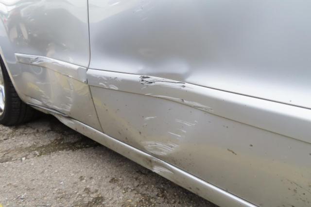 Rechte Seite beschädigt. Anstoss rechts im Bereich der B-Säule. Schweller rechts ist eingedrückt. Tür vorne rechts ist eingedrückt. Tür hinten rechts ist eingedrückt.