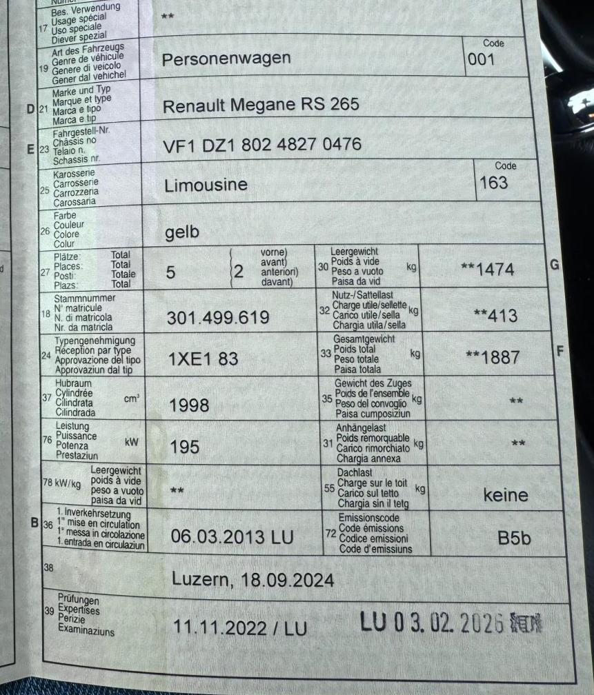 Sehr gepflegter Renault Megane RS mit 265 PS Frisch ab MFK am 02.2026