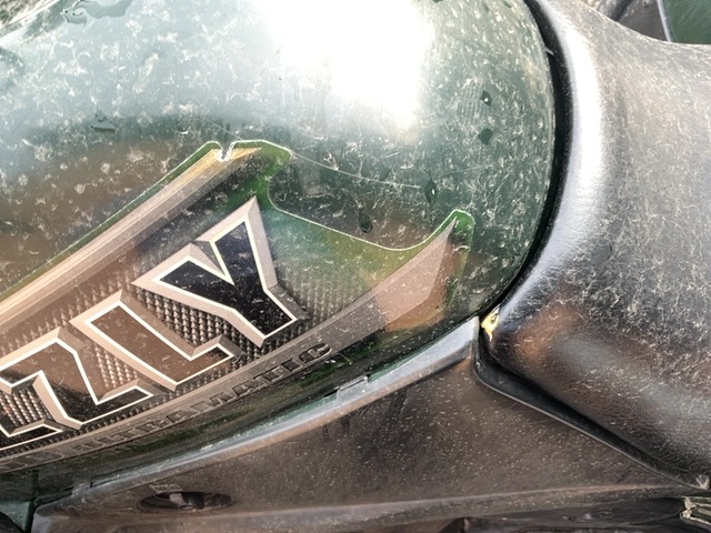 Beschreibung der Schäden: carénages avant gaucher cassés, deux jantes avants pliées, suspension avant pliée