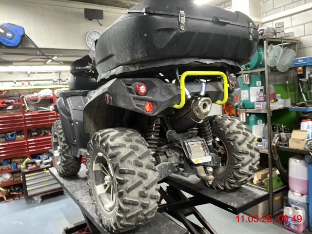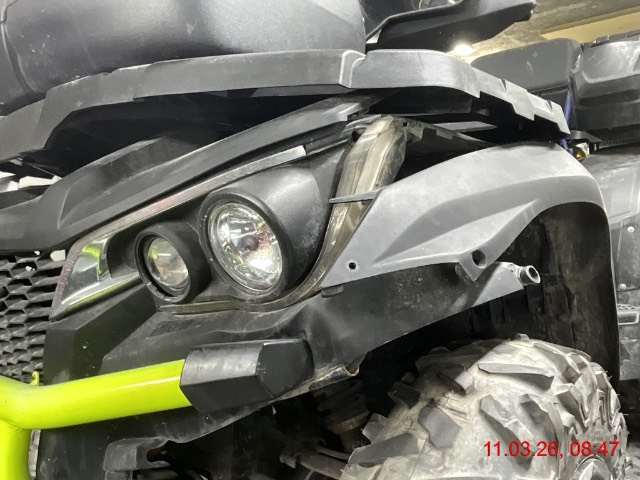Beschreibung der Schäden: Ganze Front gestaucht, Rahmen Vlinks deformiert. Seilwinde Halterung gestaucht. Motor läuft.