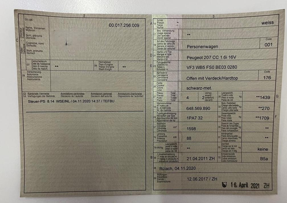 PEUGEOT 207 CC 1.6i 16V