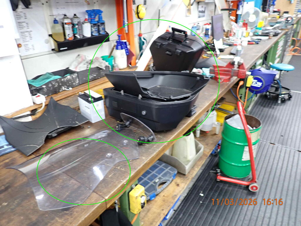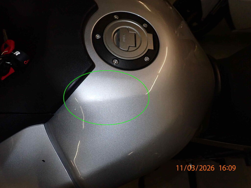 STURZSCHADEN SEITE LINKSKRAFTSTOFFTANK LACKSCHADENLENKER / BREMSPEDAL / SCHALTPEDALWINDSCHILD / RÜCKSPIEGEL L + RKOMBIINSTRUMENTGABEL VL UNTENDIVERSE ANBAUTEILE BESCHÄDIGT