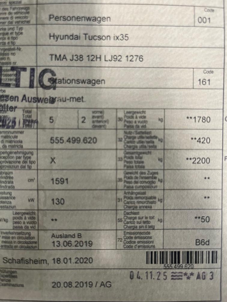 Hyundai Tucson aus Eintausch: - MFK 04.11.2025 - letzter Service am 08.11.2024 bei 131299 inkl. Bremsen hinten - Zustand sehr gut, siehe Bilder. - 360 Grad Kamera - Sitz Heizung und Kühlung - Top Ausstattung - Typenschein X - Heckklappe geht Elektrisch auf aber nicht elektrisch zu. Kein Werkstatttest durchgeführt. Für sichtbare und nicht sichtbare Mängel wird nicht gehaftet. Keine Minderung und Wandelung möglich. Keine Nachverhandlungen. Das Fahrzeug muss innerhalb von 7 Tagen nach Zuschlag abgeholt werden und bar bezahlt werden.