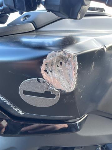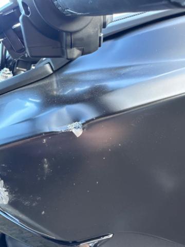 Kraftstofftank deformiert. Kraftstofftank Lackbeschädigung.