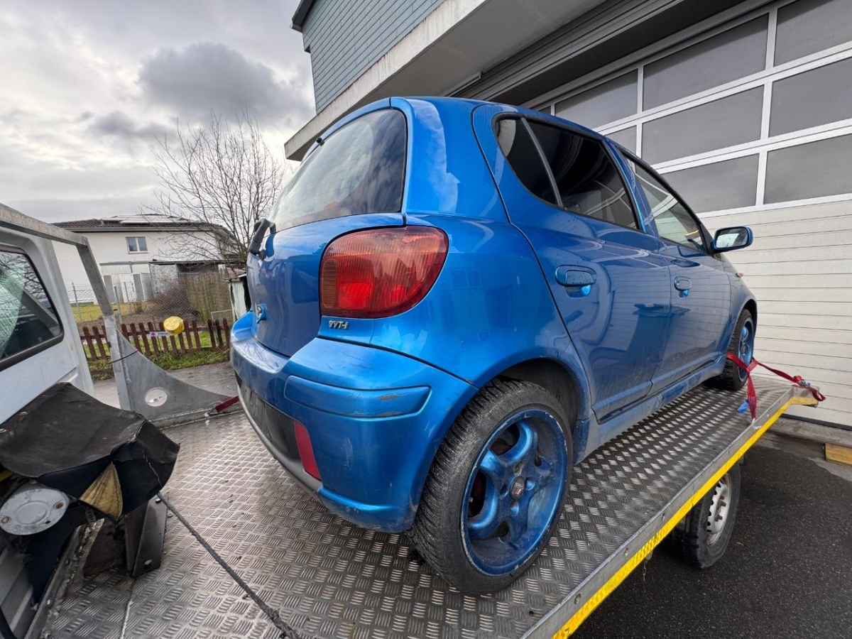 Gurtstraffer vorne, Heck- und Frontspoiler, Räder: 4 Leichtmetallfelgen 15J mit Pneu, Leseleuchten vorne, Lenkrad: Lenkrad, Schaltknauf und Handbremshebel Leder, Getriebe: 5-Gang-Getriebe, Stabilitäts- und Traktionskontrolle (VSC und TRC), Türgriffe aussen in Wagenfarbe, Drehzahlmesser, Licht: Nebelschlussleuchte, Bremsassistent (BAS), Getönte Scheiben, Notrad, Radiovorbereitung, Antenne, Entstörung und 4 LS, Info-Display, Heckscheibenheizung, Aussentemperaturanzeige, ISOFIX Kindersitzvorrichtung, Seitenaufprall-Schutzsystem, Wassertemperaturanzeige, Scheibenwischer vorne mit Intervall, Sportfahrwerk, Pollenfilter (Staubfilter), Sitze: Sportsitze vorne, Rücksitze längsverstellbar, Laderaumabdeckung, Antiblockiersystem (ABS), Zentralverriegelung mit Fernbedienung, Polster: Stoff-Ausstattung, Schublade unter Beifahrersitz, Wegfahrsperre elektronisch, Elektrische Fensterheber vorne, Radio/CD mit Lenkradfernbedienung, Tankdeckel-Entriegelung von innen, Stossstangen und Aussenspiegel in Wagenfarbe, Katalysator geregelt, Lichtwarnsummer, Leuchtweitenregulierung von innen, Lenkrad: Lenkrad höhenverstellbar, Airbag: Airbag Fahrer und Beifahrer, Sitze: Rücksitzlehne geteilt abklappbar, Servolenkung geschwindigkeitsabhängig, Licht: Nebelscheinwerfer, Digital Uhr, Handschuhfach, Tageskilometerzähler, Höhenverstellbare Gurten vorne, Aussenspiegel rechts und links beheizbar und elektrisch verstellbar, 3 Kopfstützen hinten, Licht: Drittes Bremslicht, Sitze: Fahrersitz höhenverstellbar, Cupholder vorne und hinten, Heckscheiben-Wisch-/Waschanlage