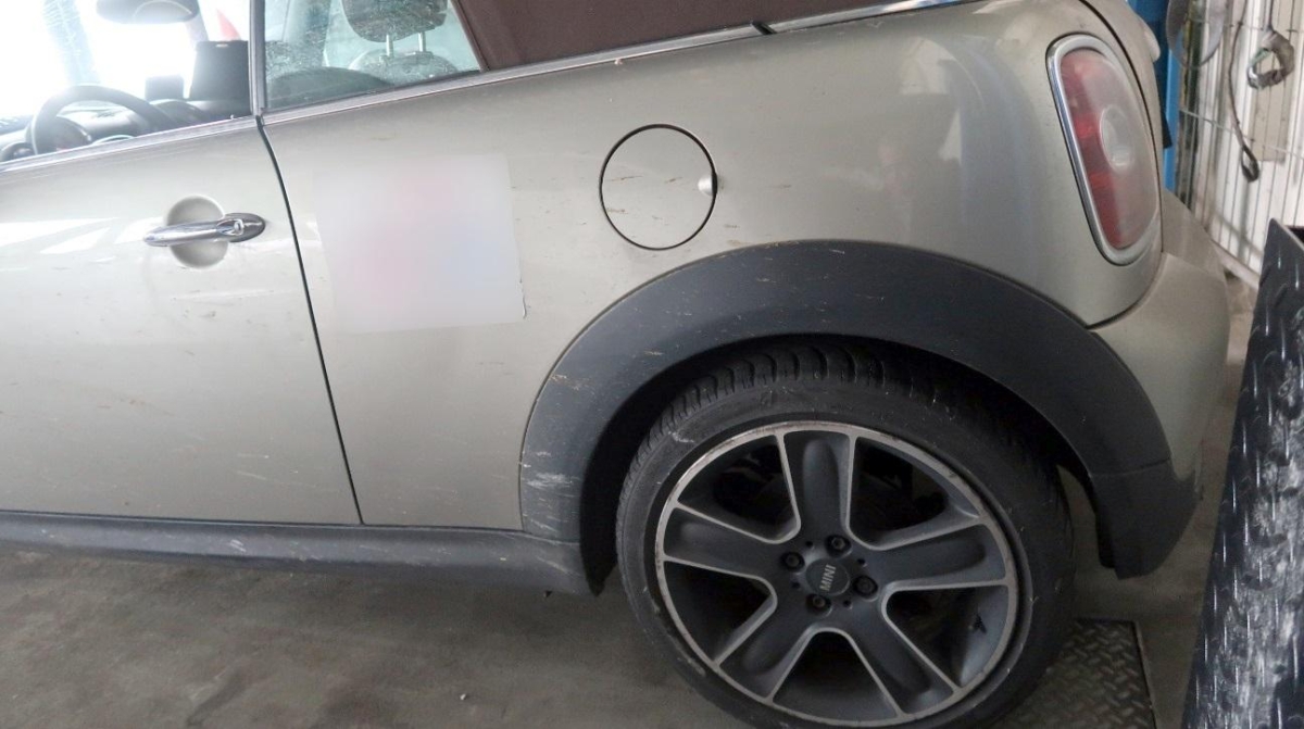 Armaturenbrett, Auspuffanlage, Federbein vorne rechts, Heck, Interieur, Kofferraumboden, Längsträger hinten links, Längsträger hinten rechts, Längsträger vorne rechts, Radaufhängung hinten links, Radaufhängung hinten rechts, Radaufhängung vorne rechts, Radhaus hinten links, Radhaus hinten rechts, Radhaus vorne rechts, Rücklicht links, Rücklicht rechts, Schweller rechts, Seitenwand links, Seitenwand rechts, Stossstange hinten, Türe vorne rechts