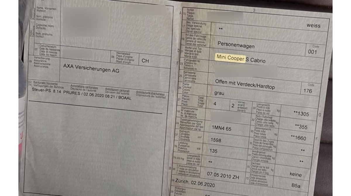 Überrollschutzsystem, Park Distance Control (PDC), Fahrersitz höhenverstellbar, Katalysator geregelt, Vollautomatisches Verdeck, Lackierung: Uni-Lackierung, Wassertemperaturanzeige, Scheibenwischer vorne mit Intervall, Seitenairbags, 3-Punkt-Sicherheitsgurte auf allen Plätzen, Getriebe: 6-Gang-Getriebe, Auto Start-/Stop-Anlage, Wegfahrsperre elektronisch, Leseleuchten vorne, Drehzahlmesser, Cupholder, Elektrische Fensterheber vorne + hinten mit Komfortschliessung, Reifenreparatur-Set (Tire Fit), Start-/Stop-Knopf, Verdeck schwarz, Abschliessbares Handschuhfach, Sonnenblende Fahrer und Beifahrerseite mit beleuchtetem Spiegel, Verchromtes Auspuffendrohr, Pollenfilter (Staubfilter), Innenspiegel abblendbar, Lederlenkrad, Automatische Stabilitäts- und Traktions- kontrolle, Lenkrad höhenverstellbar, Kopfstützen hinten, Lichtwarnsummer, Aussenspiegel in Wagenfarbe, Zentralverriegelung mit Fernbedienung, Licht: Halogenscheinwerfer, Mittelkonsole, Höhenverstellbare Gurten vorne, Licht: Abblendlichtausschaltverzögerung 'Follow me home', ISOFIX Kindersitzvorrichtung, Dynamische Stabilitätskontrolle (DSC), Interieurfarbe Carbon Black, Bremsassistent (BAS), Drittes Bremslicht, Licht: Nebelschlussleuchte, Heckscheibenheizung, Leuchtweitenregulierung von innen, Antiblockiersystem (ABS), AUX-Anschluss, Leichtmetallräder S-Winder, 16J, Lenkrad: Servolenkung, Sitze: Rücksitzlehne geteilt abklappbar, Airbag: Airbag Fahrer und Beifahrer, Cornering Brake Control (CBC), Abschliessbare Radschrauben, Tageskilometerzähler, Bremsbelag-Verschleissanzeige, Türgriffe aussen verchromt, Radio MINI CD, Wartungsintervall-Anzeige, Erweiterte Dekorumfänge, Polster: Stoff-Ausstattung