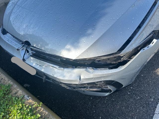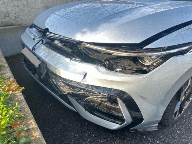 Fussgängerschutz ausgelöst. Front rechts eingedrückt. Kotflügel vorne rechts und links eingedrückt. Motorhaube eingedrückt. Frontblech/Maskenblech eingedrückt. Längsträger vorne rechts und links gestaucht. Fahrzeugvorbau nach rechts verschoben.