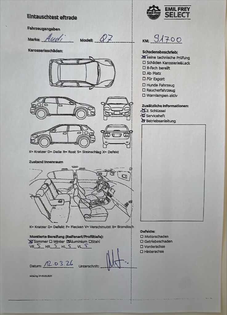 Keine technische Prüfung (Werkstatttest) vorgenommen Fahrzeug ab Platz, ohne Garantie und Aufbereitung. Motor Getriebe Vorderachse Hinterachse Airbags ausgelöst: 0 unbekannt ( Abfallcode 16.01.04ak )