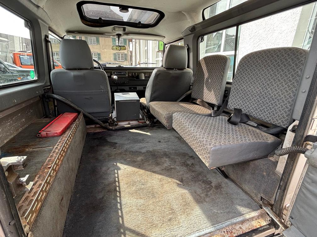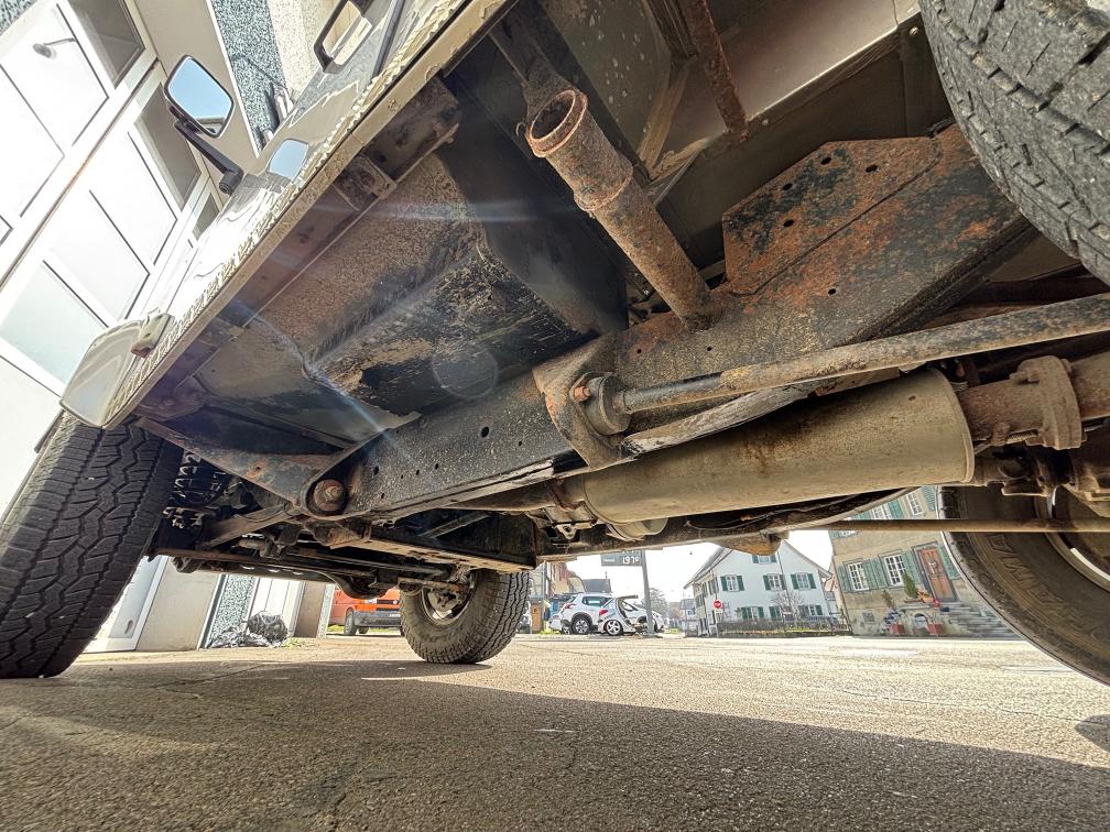 Defender frisch ab MFK (27.01.2026) Für die MFK wurde sehr viel gemacht, unter Anderem: - beide Bremszangen, -scheiben und -beläge vorne ersetzt - diverse Bremsleitungen ersetzt - Spurstangengelenke - Stossdämpfer-Dom vorne rechts ersetzt - Wischergestänge, etc. Fahrzeug ist stark schmutzig (lief im Forstbetrieb) und hat diverse Beulen und Kratzer! Über Bodenwellen hört man ein schlagendes Geräusch (wie eine Stabilisatorstrebe). Ansonsten ist das Fahrzeug problemlos fahrbar und bereit für Hobby oder Arbeitsalltag. Der Landy verfügt über 3500kg Anhängelast und hat Kugel- und Hakenkupplung. Eingetragen sind 4 Sitzplätze, weitere Sitze gibt es dazu (war mal ein 6 Plätzer). Arbeitsscheinwerfer am Heck oben über separaten Schalter. Jede Gewährleistung, soweit nach Gesetz möglich, wird wegbedungen, insbesondere sind Wandelung und Minderung ausgeschlossen.