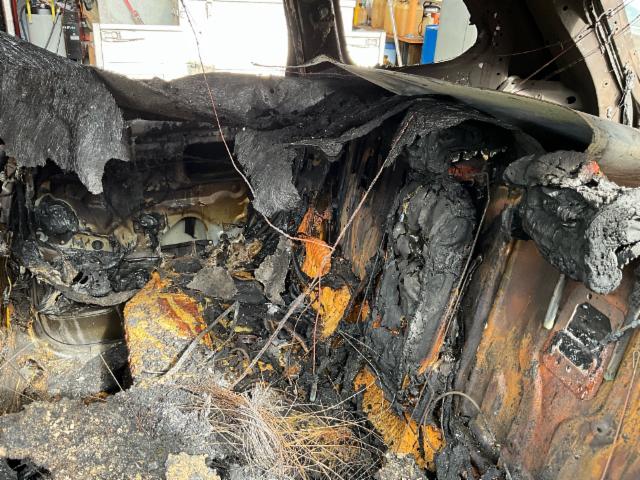 Fahrzeug ist NICHT rollbar. Fahrzeug weist äusserlich Brandspuren auf. Fahrzeug weist im Innenraum Brandspuren auf.