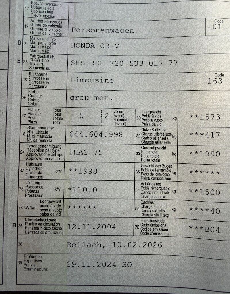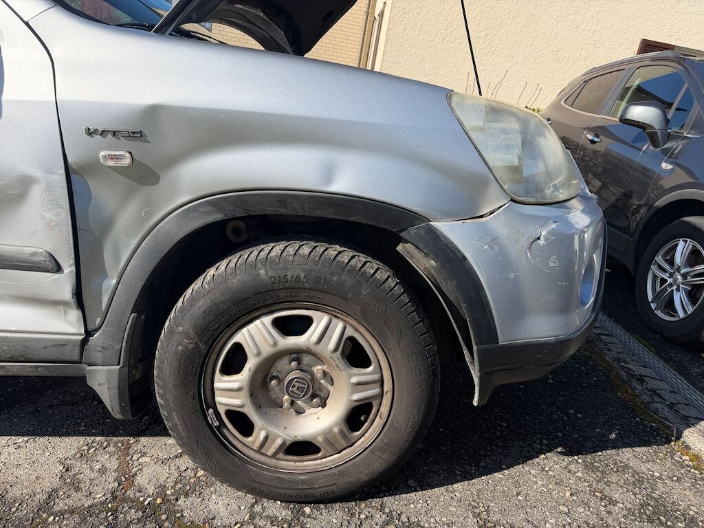 Kollisionsschaden, Aufprall in Fahrzeugseite rechts mit Beschädigung von Stossstange vorne, Kotflügel vorne rechts, Motorhaube, Rad vorne rechts, Aufhängung vorne rechts, Türen vorne und hinten rechts, B-Säule, Seitenwand hinten rechts sowie diversen Anbauteilen. Motor Getriebe Vorderachse Hinterachse Airbags ausgelöst: 0 unbekannt ( Abfallcode 16.01.04ak )